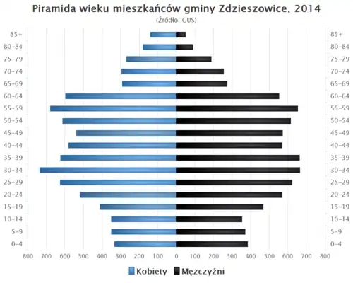 - Piramida wieku mieszkańców gminy Zdzieszowice w 2014 roku[1].