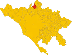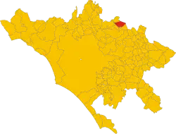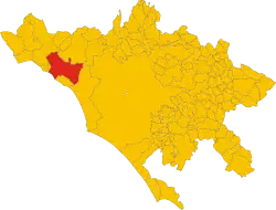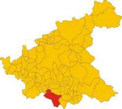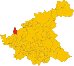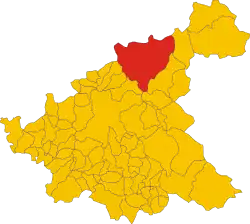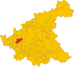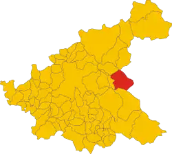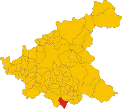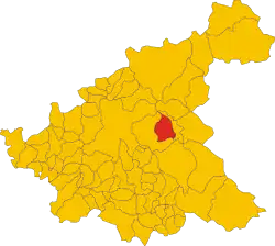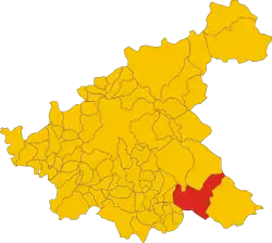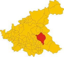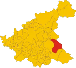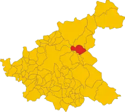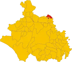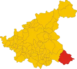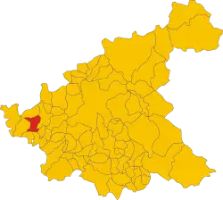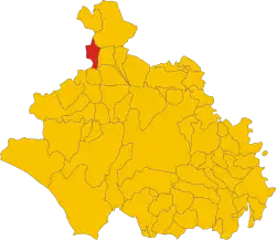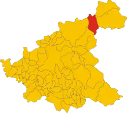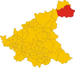 | Gmina | Prowincja | Powierzchnia (km²)[2] | Populacja[3] | Gęstość zaludnienia (os./km²)[3] | Kod ISTAT | Położenie na mapie |