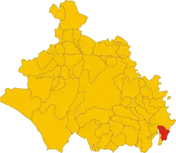 | Castel San Pietro Romano[d] | 15,1 | 883 | 58 | 058025 | ![]() | |