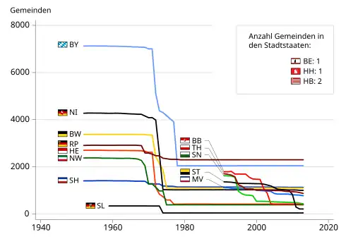 Ustroje gmin w poszczególnych landach uregulowane są przez ustawodawstwa krajowe, co powoduje ich mocne zróżnicowanie, przede wszystkim pod względem uprawnień organów gminy, długości ich kadencji i sposobów ich wyboru[2].