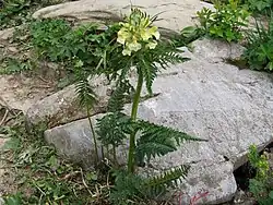 - Ulistnienie skrętoległe. Liście nagie, duże, pierzastosieczne, piłkowano ząbkowane. Najwyższe liście są tylko pierzastoklapowane. Łatki oraz ząbki liści o szerokości 1,5–3 mm są podługowate lub jajowate[7].