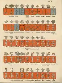 - ↑ Stanisław Teodor Chrząński: Tablice odmian herbowych. Warszawa: Juliusz Karol Ostrowski, 1909, s. tabl VI.