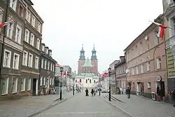 ![]() Bazylika prymasowska, widok od zachodu, znad jeziora Jelonek (2014) | |||||