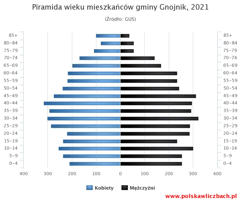 - Piramida wieku mieszkańców gminy Gnojnik w 2021 roku.