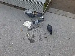 - pokarm roślinny – zasadniczo nasiona, do tego owoce i zielone liście, niekiedy bezkręgowce; często połykają drobne kamyki (gastrolity)[4]