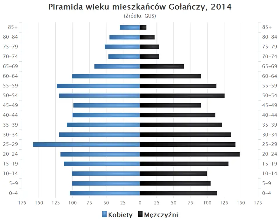- Piramida wieku mieszkańców Gołańczy w 2014 roku[2].