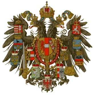 Herb ten obowiązywał do r. 1806. Po rozwiązaniu Świętego Cesarstwa Rzymskiego symbol dwugłowego, czarnego orła na złotym tle przejęli Habsburgowie, jako herb Austrii, z tą różnicą, że dziób i szpony orła były złote. Zmodyfikowany herb Cesarstwa Austrii miał podkreślać prawa Wiednia do schedy po I Rzeszy.