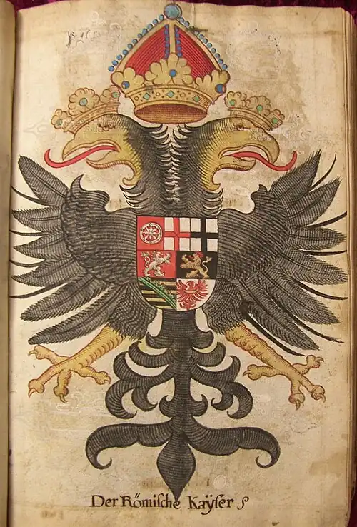 Godłem Świętego Cesarstwa Rzymskiego Narodu Niemieckiego był czarny, dwugłowy orzeł na złotej tarczy herbowej. Herb ten pozostał znakiem niemieckich cesarzy I Rzeszy po rozpadzie państwa Karola Wielkiego. Początkowo był to złoty orzeł na czarnej tarczy. Cesarz Fryderyk II odwrócił barwy herbowe - od tego momentu orzeł był czarny, a pole było koloru złotego. Jeden z jego następców, Zygmunt Luksemburski, zastąpił orła jego dwugłowym odpowiednikiem, co dodatkowo miało podkreślać wyjątkowość władzy cesarskiej. Herb ten przybierał różne formy w zależności od władców Świętego Cesarstwa Rzymskiego Narodu Niemieckiego.
