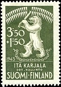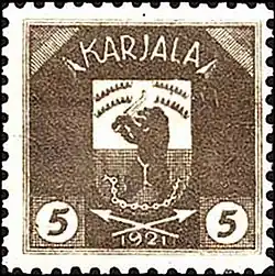 Także kilka fińskich rejonów, położonych częściowo lub w całości na historycznych karelskich ziemiach ma w herbach wizerunek starego karelskiego godła.