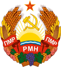 Godło Naddniestrza pochodzi z okresu Związku Radzieckiego i swym wyglądem nawiązuje do godła ZSRR.