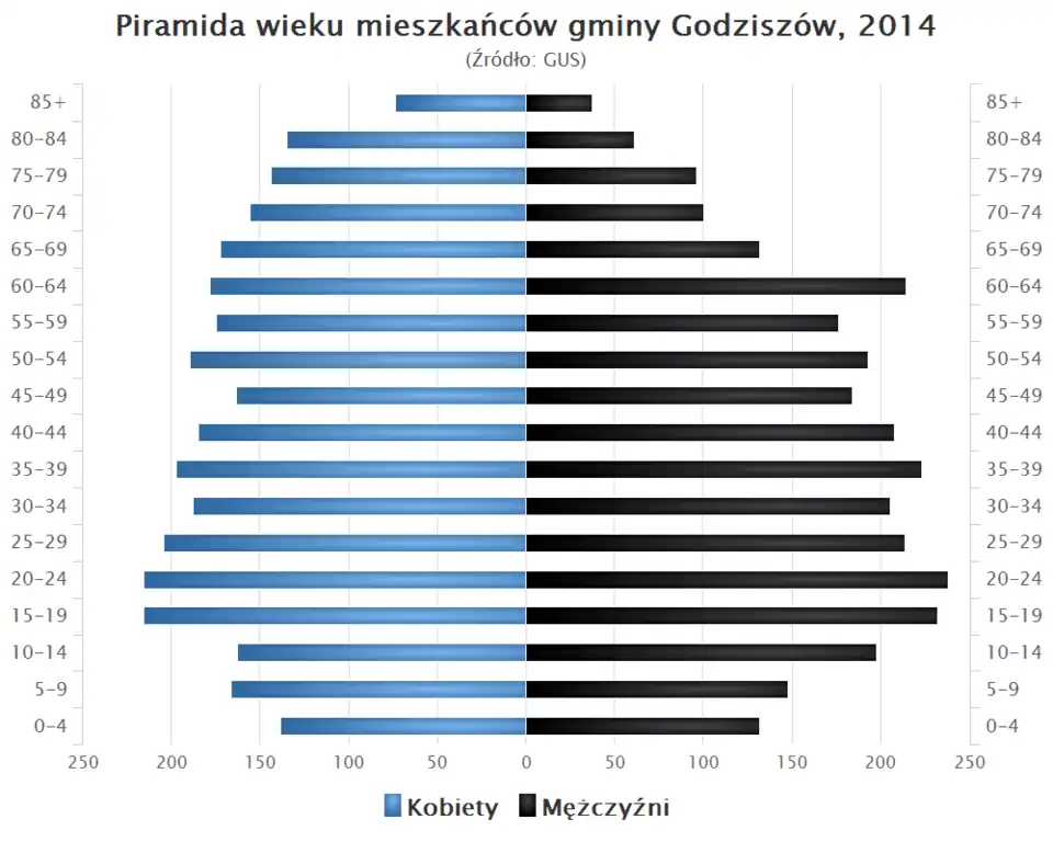 - Piramida wieku mieszkańców gminy Godziszów w 2014 roku[6].