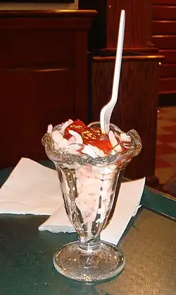 - koktajl z imitacji kraba, przyrządzany w ten sam sposób, co koktajl z krewetek, za 99 centów,