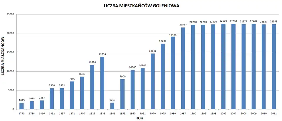 - ↑ Ludność. Stan i struktura w Goleniowie (Stan w dniu 31.12.2010 r.), Warszawa: Główny Urząd Statystyczny, 2011 [dostęp 2011-01-24] [zarchiwizowane z adresu 2011-04-12].