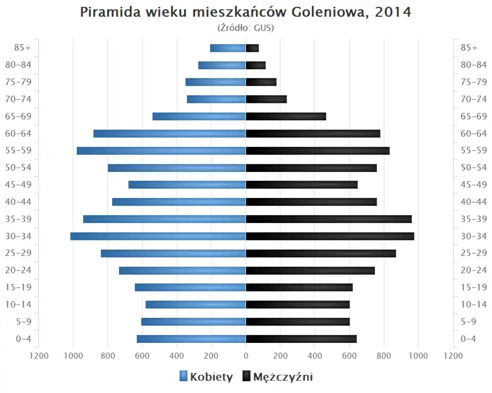 - Piramida wieku mieszkańców Goleniowa w 2014 roku[12].