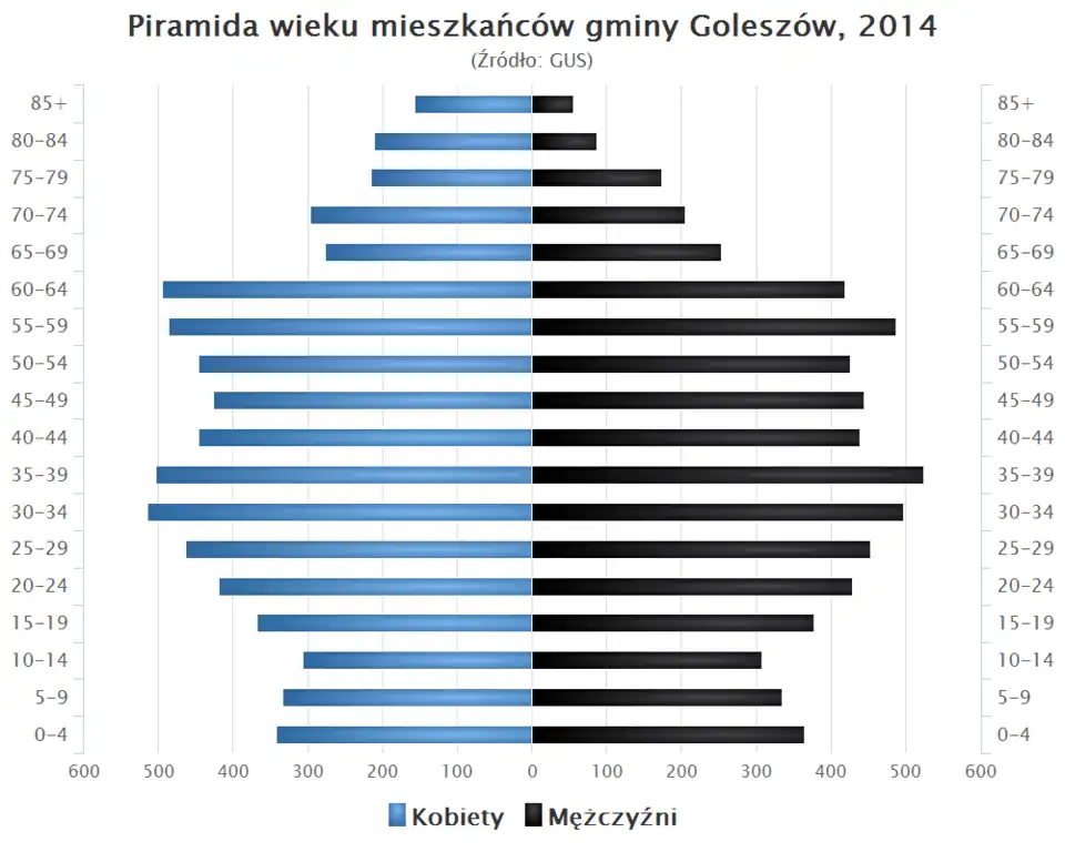 - Piramida wieku mieszkańców gminy Goleszów w 2014 roku[1].