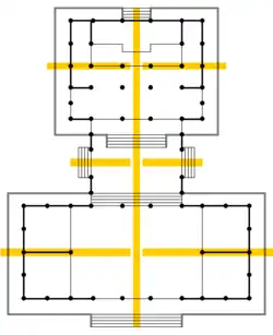 Cechą nadrzędną jest nagromadzenie detali dekoracyjnych. Cechą charakterystyczną jest połączenie honden i haiden mniejszym, środkowym pawilonem (nazywanym ai-no-ma (jap. 相の間) lub chūden (jap. 中殿). Jeśli wykonany jest z kamienia może być określany jako ishi-no-ma (jap. 石の間))[1][2]. Poziomy podłogi w każdym z pomieszczeń mogą się różnić[1]. Łącznik może również pełnić funkcje wotywne – nazywany jest wówczas heiden (jap. 幣殿).