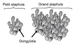 Gongylidia (l.poj. gongylidium) – bulwkowate narośla na strzępkach grzybów uprawianych przez mrówki[1]. Są to gatunki grzybów tak przystosowane do symbiozy z mrówkami, że nie występują poza ich mrowiskami[2]. Rozwijające się larwy mrówek, robotnice, królowa i żołnierze żywią się gongylidiami. Gongylidia są rozprowadzane po całej kolonii[3]. Są elipsoidalne, mają około 30–50 mikrometrów średnicy i tworzą skupiska zwane staphylami. Gongylidia są bogate w glikogen, w formie łatwo przyswajalnej przez mrówki, oraz hydrolazy[2].