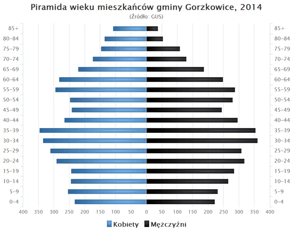 - Piramida wieku mieszkańców gminy Gorzkowice w 2014 roku[1].