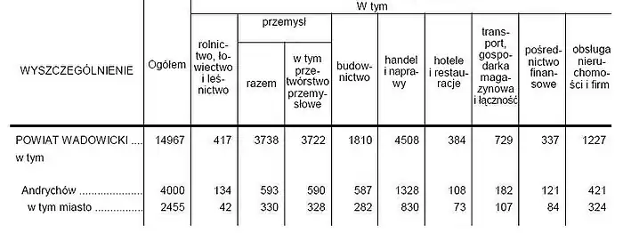 - ↑ Dane statystyczne z Powiatowego Urzędu Pracy w Wadowicach.