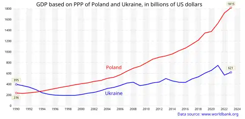 Gospodarka Ukrainy – jest gospodarką mieszaną. Zajęła ona 49. miejsce na świecie pod względem wielkości PKB (410 mld USD dane za 2019 rok). W 2018 roku pod względem PKB per capita Ukraina zajęła przedostatnie miejsce wśród krajów europejskich, wyprzedzając jedynie Mołdawię.