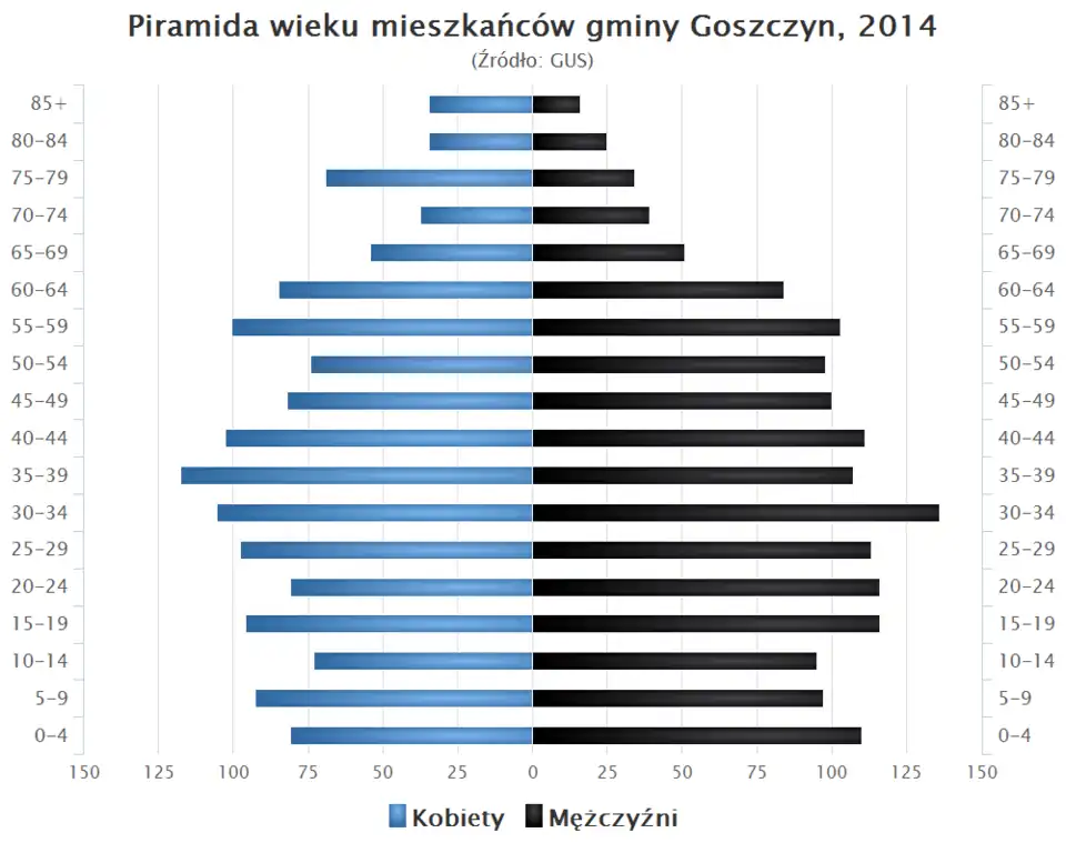 - Piramida wieku mieszkańców gminy Goszczyn w 2014 roku[7].