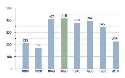 Liczba ludności w ostatnich 3 wiekach (wieś i majątek)[5][6][7][8][9][10]: