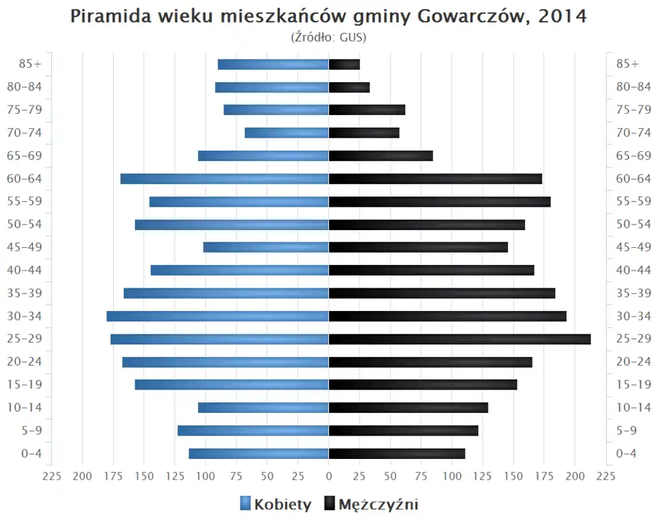 - Piramida wieku mieszkańców gminy Gowarczów w 2014 roku[9].