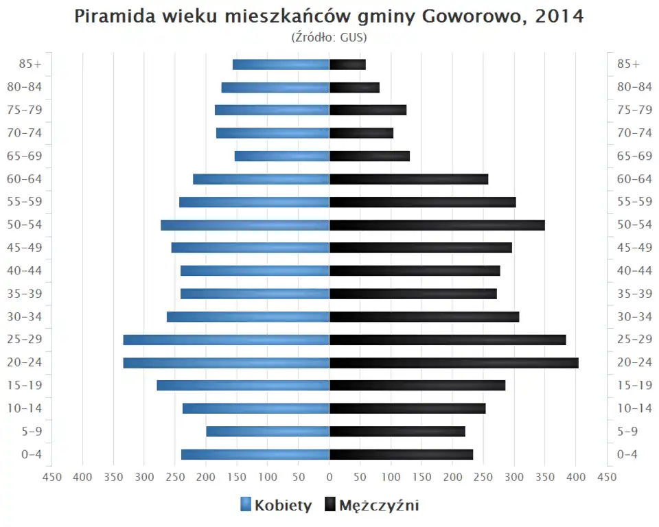 - Piramida wieku mieszkańców gminy Goworowo w 2014 roku[10].