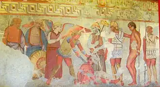 Grobowiec zdobył sobie sławę dzięki zdobiącym westybul freskom. Przedstawiono na nim ofiarę złożoną przez Achillesa z jeńców trojańskich na pogrzebie Patroklosa oraz scenę z dziejów Etrusków, w której Mastarna uwalnia Caile Vipinsa[1][2][3]. W 1862 roku książę Alessandro Torlonia polecił zdjąć freski ze ścian i przewieźć je do Rzymu[3]. Obecnie malowidła znajdują się w rzymskiej Willi Albani i nie są udostępniane zwiedzającym[1][3].