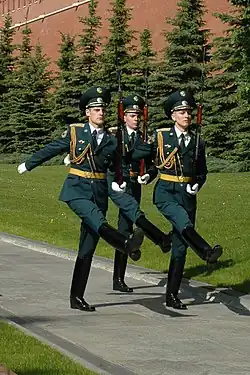 Wartę honorową przy Grobie Nieznanego Żołnierza pełnią żołnierze Pułku Kremlowskiego.