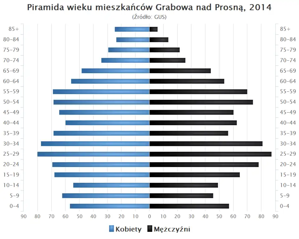 - Piramida wieku mieszkańców Grabowa nad Prosną w 2014 roku[1].