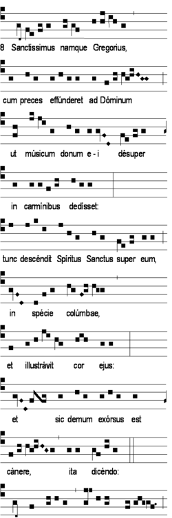 - ↑ Graduale sacrosanctae Romanae Ecclesiae de Tempore et de Sanctis SS. D. N. Pii X. Pontificis Maximi jussu restitutum et editum, Typis Vaticanis, 1908.