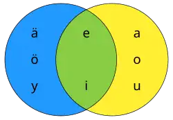 Końcówki i liczne w języku fińskim sufiksy, zawierające samogłoski inne niż e oraz i, występują zatem zawsze w dwóch wariantach, co umożliwia dopasowywanie ich do samogłosek występujących w słowie. Na przykład końcówka przypadka inessiivi posiada warianty -ssa oraz -ssä, por.: