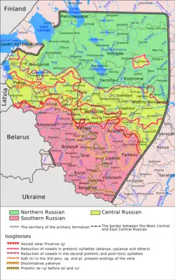 Współcześnie dialekty języka rosyjskiego zwykle dzieli się na trzy grupy: północne, południowe i przejściowe. Różnice między nimi dotyczą głównie leksyki i fonologii (m.in. wymowa samogłosek, zwłaszcza w związku z pozycją akcentu[5]).