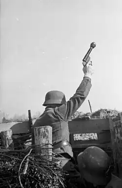 - Sprenggranat Patrone LP – konstrukcja podobna do Wurfgranat Patrone 326 LP, ale ze znacznie cięższym granatem. Zasięg wynosił tylko 5 metrów. Używany głównie przez załogi czołgów (do zwalczania piechoty znajdującej się w bezpośredniej bliskości czołgu). Zapalnik uderzeniowy.