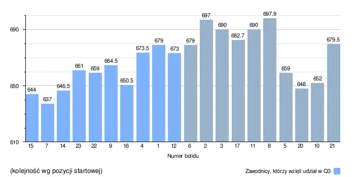 | Poz. | Nr | Kierowca | Konstruktor | Q1 | Q2 | Q3 | Poz. s. | |||||