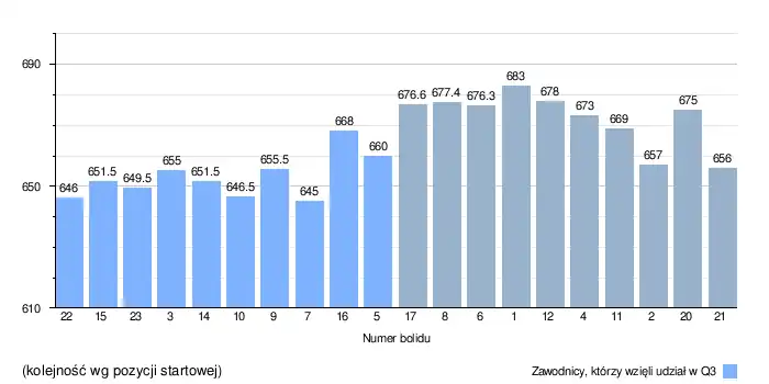 | Poz. | Nr | Kierowca | Konstruktor | Q1 | Q2 | Q3 | ||||||