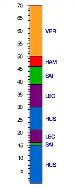 | 16 | Ferrari | 17–21, 31–39 | 14 | |||