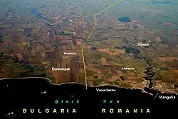 Granica powstała w 1878 na kongresie berlińskim. Od obecnej różniła się odcinkiem lądowym, gdyż część Dobrudży pozostawała pod kontrolą osmańską. W 1913 roku Rumunia zajęła ten obszar. Odcinek linearny biegł wówczas pomiędzy bułgarskimi miastami Ruse i Warna. Rumuni utrzymali kontrolę do maja 1918, a odzyskali w listopadzie 1919 i kontrolowali do września 1940 roku. Po zakończeniu II wojny światowej granica nie uległa już zmianie.