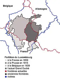 Granica pomiędzy tymi dwoma krajami przebiega niezmiennie od 1870 roku, gdy powstało państwo niemieckie. Wyjątkiem jest okres II wojny światowej, gdy obszar Luksemburga został wcielony do hitlerowskiej III Rzeszy. Granica biegnie w południowej części wzdłuż rzeki Mozeli, następnie zakręca na północ wzdłuż rzeki Sûre a później północny zachód rzeką Our i podąża do trójstyku z Belgią.