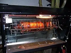 Czasem grille są wyposażone w metalowy ruszt, który obracany jest nad ogniem przez silnik elektryczny, dzięki czemu żywność jest równomiernie opiekana. Niektóre grille zawierają także specjalną przegrodę, do której wkłada się drewniane wióry mające nadać przygotowywanej żywności intensywny aromat wędzenia.