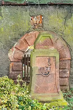 - Pocztowy słup ćwierćmilowy z 1722 w Bernbruch z monogramem króla Augusta II
