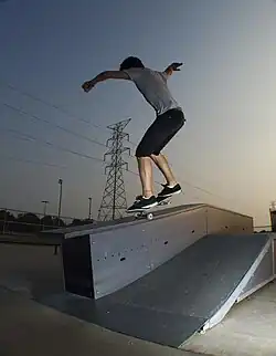 - Nosegrind – ślizg wykonywany tylko na przednim trucku, oś deskorolki pokrywa się z grindowaną krawędzią. Występują dwie podstawowe modyfikacje nosegrinda: