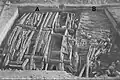 Zdjęcia przedstawiające pozostałości grodziska odkryte podczas wykopalisk z 1937 roku[4]