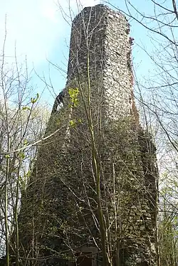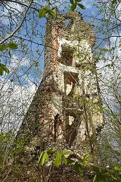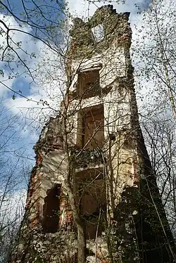 Na wzgórzu znajdują się ruiny wieży widokowej z 1813 roku imitujące zamek, wybudowane przez hrabiego Antona von Magnisa[1]. Obecnie ruiny oraz baszta są zaniedbane. Zawalił się zmurszały dach, połamały się kręte schody[1]. Z zewnątrz można zobaczyć kunsztowną konstrukcję budowli z łamanego kamienia. Fundamenty oraz przybudówki ze ścianami przypominają średniowieczne zamczysko[1]. Na ścianach widać ślady schodów oraz wejścia do nieistniejących pokoi przyklejonych do baszty.