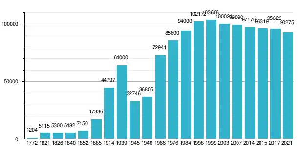 1939–1945 – niemiecką listę narodową podpisało 87% mieszkańców[28]