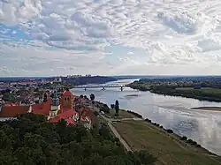Grudziądz leży nad Wisłą, na 835 km biegu rzeki. Szerokość koryta rzeki w obrębie miasta wynosi od 320 do 500 m, a spadek rzeki – 0,2%. Głębokość koryta dochodzi do 9 m[17].