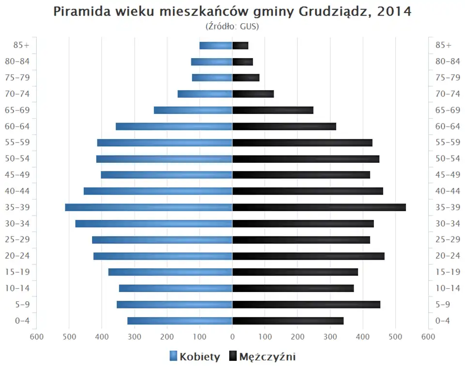 Piramida wieku mieszkańców gminy Grudziądz w 2014 roku[2].