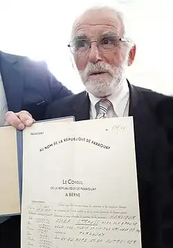 - ↑ Jakub Kumoch i inni, Lista Ładosia. Spis osób, na których nazwiska w okresie II wojny światowej zostały wystawione paszporty latynoamerykańskie przez Poselstwo RP i organizacje żydowskie w Szwajcarii, Warszawa: Instytut Solidarności i Męstwa im. Witolda Pileckiego, 2019, s. 18, 35, ISBN 978-83-66340-15-2.