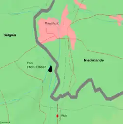 Fort Eben-Emael stanowił chlubę belgijskiej armii w przededniu II wojny światowej. Umocnienie wzniesiono dla zabezpieczenia granicy belgijskiej w newralgicznym miejscu: u połączenia Mozy z Kanałem Alberta. Grupę warowną wzniesiono na płaskowyżu górującym nad Mozą. Obiekty zostały zaplanowane wewnątrz narysu zbliżonego do czworoboku, przy czym jeden dłuższy bok zabezpieczała rzeka, drugi – sztuczny rów wypełniony wodą, a krótsze, południowe boki – mur przeciwpancerny.